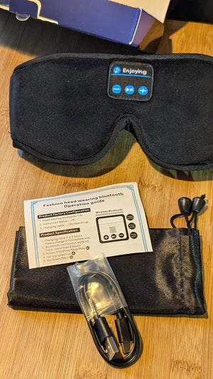 Thin straps, eye pressure, tangled wires, and sound that cuts off halfway through the night… no wonder you wake up irritated. Regular masks block light but not discomfort — and earbuds dig into your ears, making side-sleeping painful. The result? You’re tired, tense, and frustrated before morning even starts.